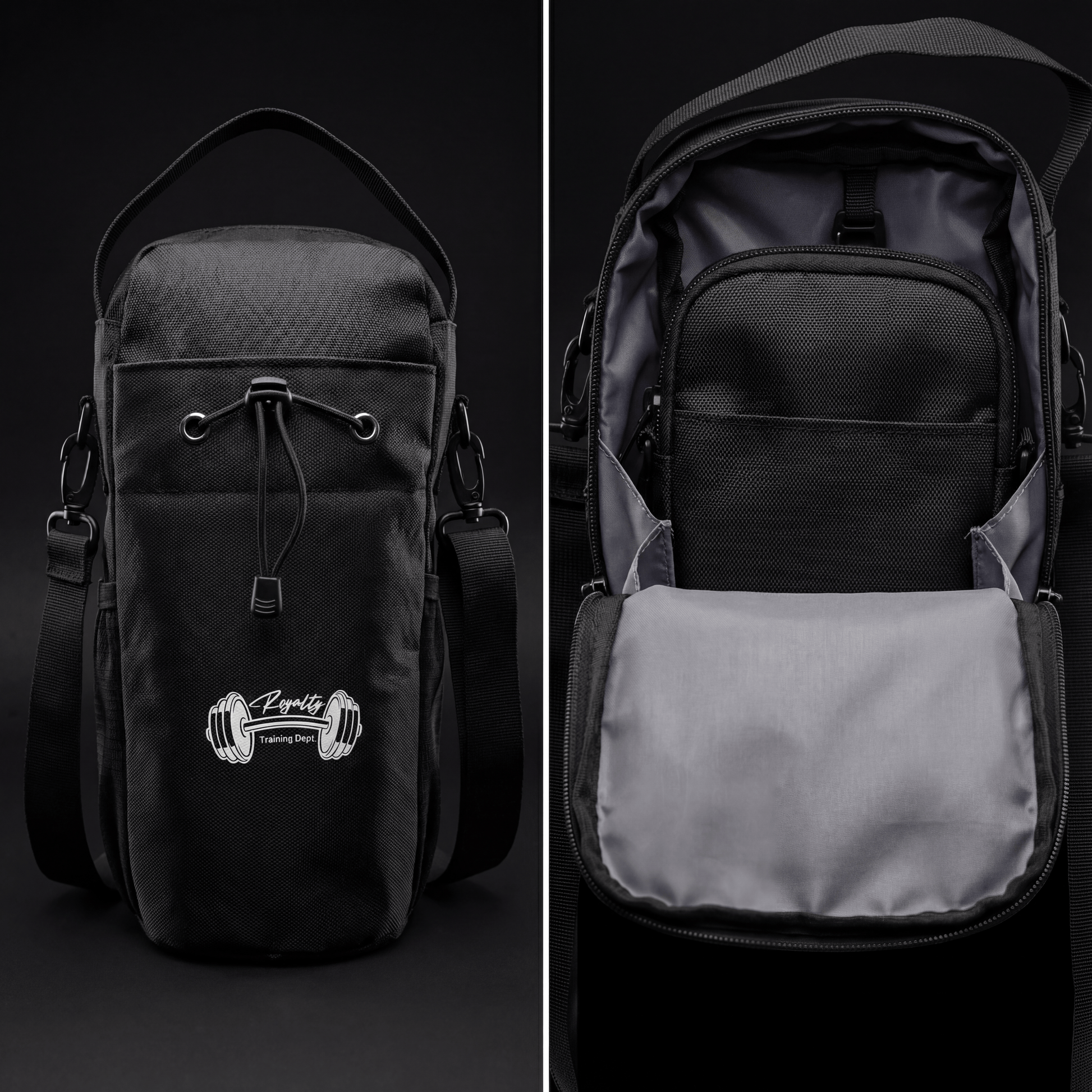 Meet Royalty’s first-ever gym bag — built for performance, style, and everyday athletes who demand more from their gear. Made from premium black nylon with a sleek, modern profile, this bag brings luxury quality to the gym floor. The front pocket includes a dedicated water bottle compartment secured by an adjustable string, while the bottom-center heat-pressed Royalty logo adds a sharp finishing touch. On the back, a hidden zipper pocket keeps your phone, keys, and wallet clean, safe, and off the ground. The standout feature: a built-in magnet that locks the bag onto gym machines, so your essentials never touch the floor again. Lightweight, durable, and smartly designed — this is the future of gym essentials, elevated by Royalty.