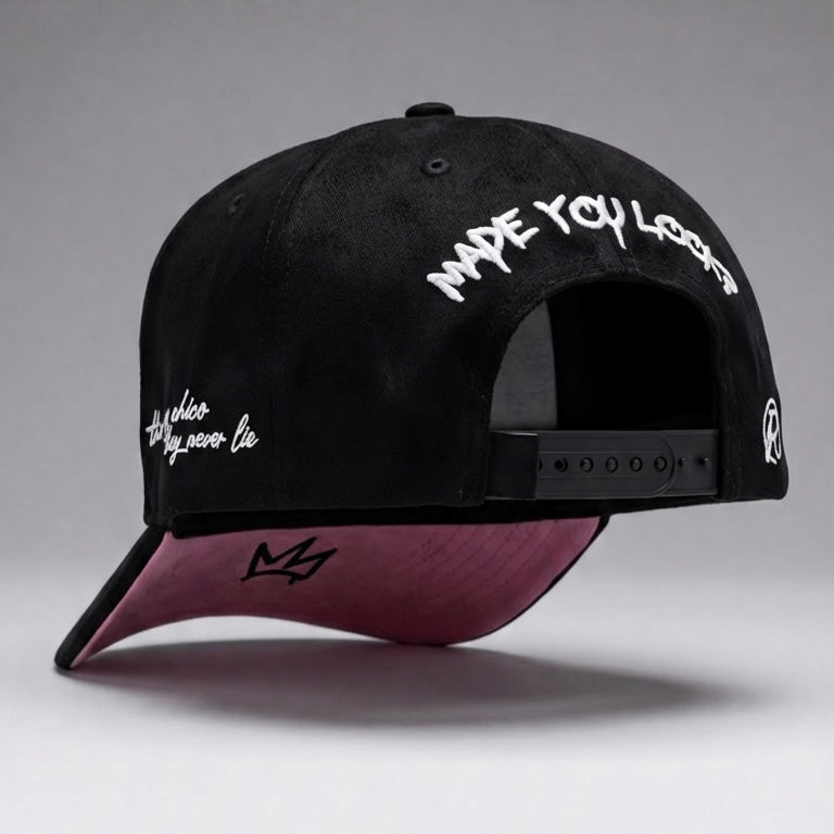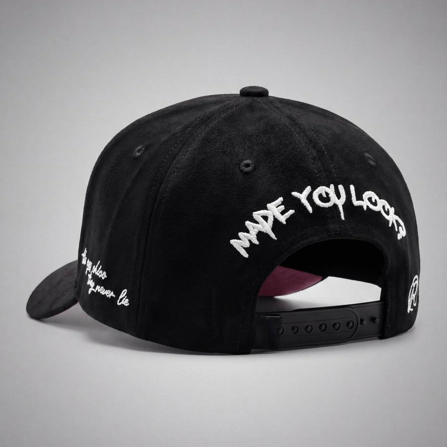 Turn heads with the All Eyes on Me cap, where premium suede brim meets striking 3D embroidery for an undeniably slick aesthetic. Engineered for all-day wear, this lightweight design delivers comfort without compromise, making it the perfect statement piece for anyone who demands style and wearability. Make an impression that lasts.